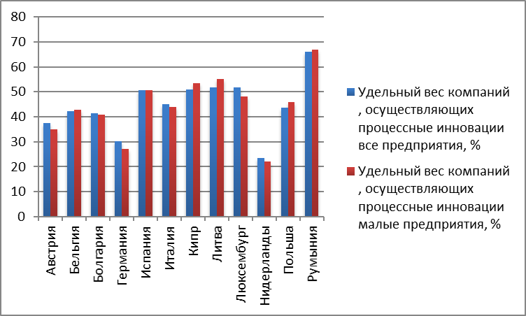 Рис. 1.2 – Удельный вес компаний стран ЕС, осуществляющих процессные инновации