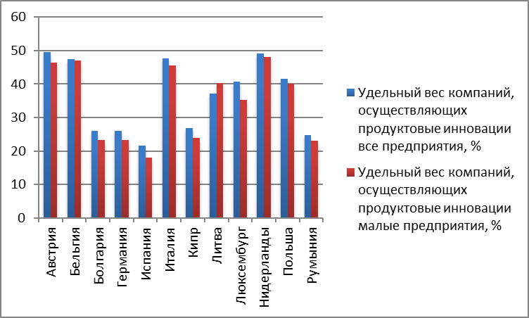 Рис. 1.3 – Удельный вес компаний стран ЕС, осуществляющих продуктовые инновации