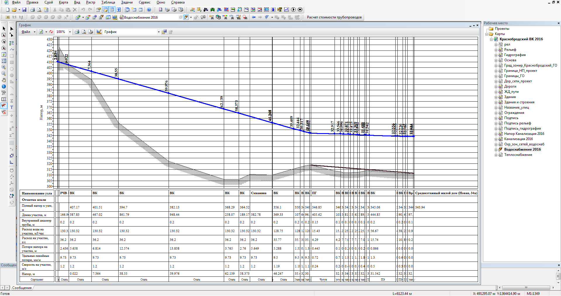 - строить пьезометрические графики и производить их сравнение для разработки и анализа сценариев перспективного развития коммуникаций;