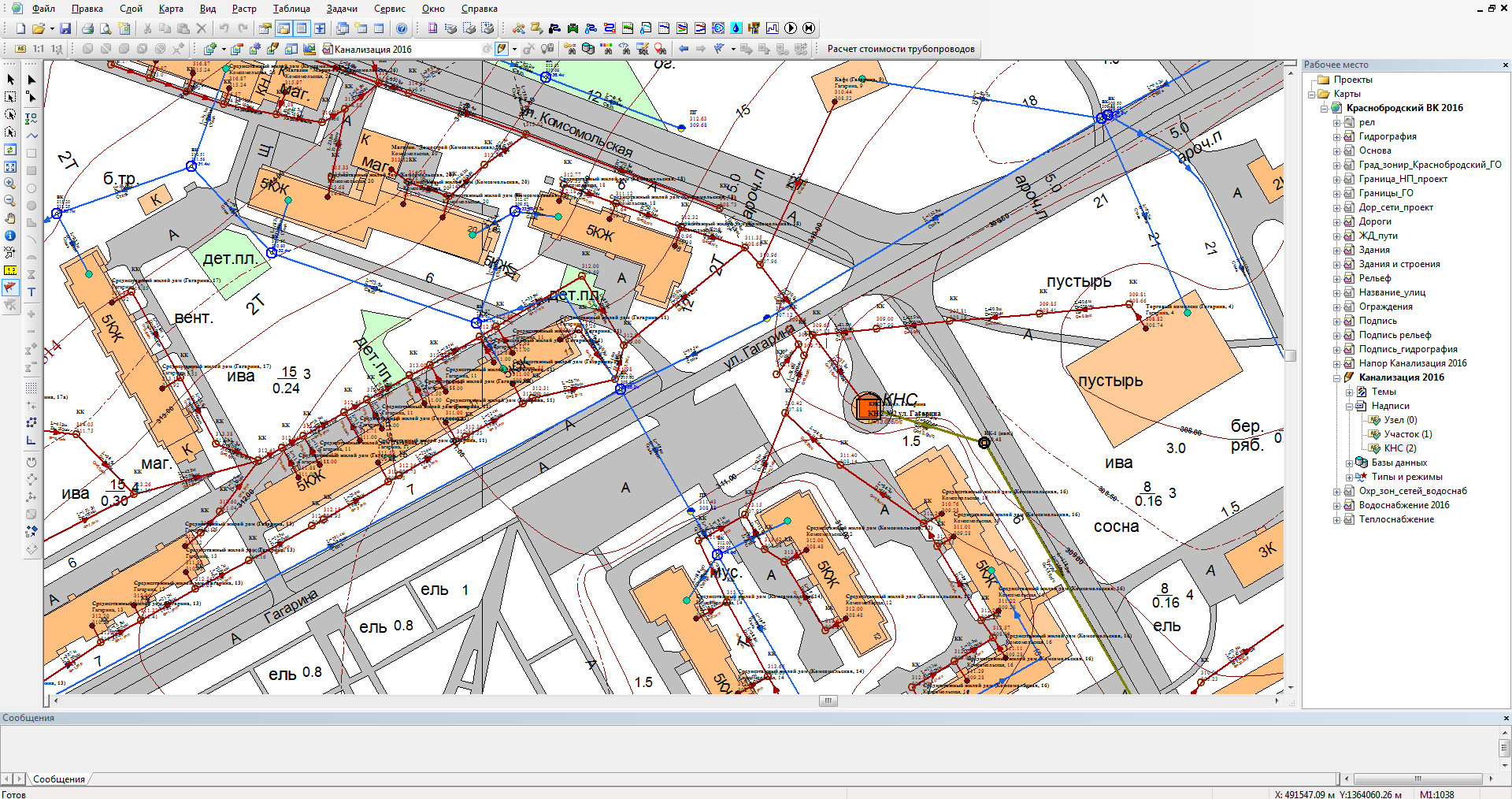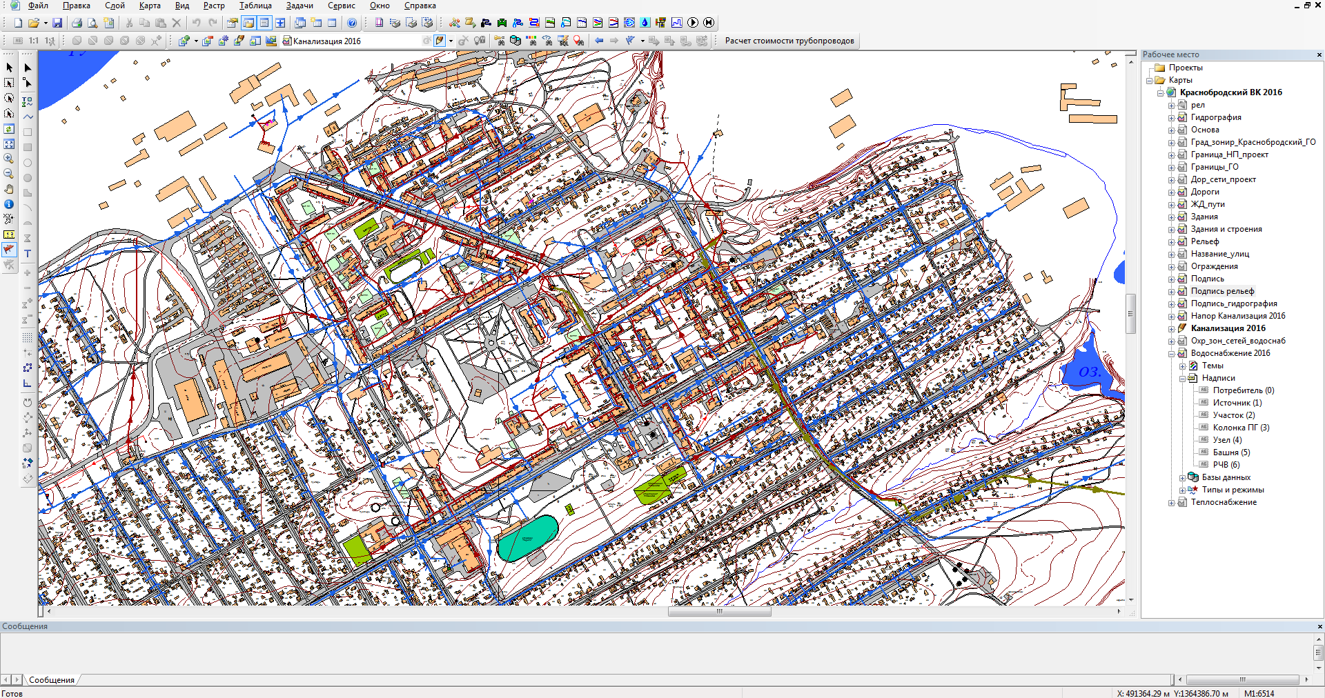 Рис. 4.1. Графическое представление объектов системы водоснабжения и водоотведения с привязкой к топографической основе