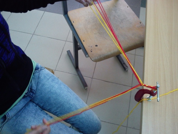 Третий вид – это тканье галуна (шъагъэ) на дощечках (Рис 6 - 10), являющееся самым старинным приемом ткачеств на территории Европы и широко распространенное на Кавказе. В качестве ткацкого станка служили четырехугольные тонкие деревянные дощечки (пхъэмбгъужъый) размером 6 – 8 см. По углам каждой дощечки просверливалось от четырех до шести отверстий.