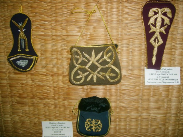 Золотое шитье становится одним из востребованных видов декоративно – прикладного искусства адыгов. На прилавках магазинов все чаще появляются изделия вышитые вручную. Ценители этого древнего искусства могут приобрести предметы домашнего интерьера вышитые в ручную( картины, текстиль, чехлы на телефон, обложки на книги и записные книги, брелоки). (Рис. 18 - 23)