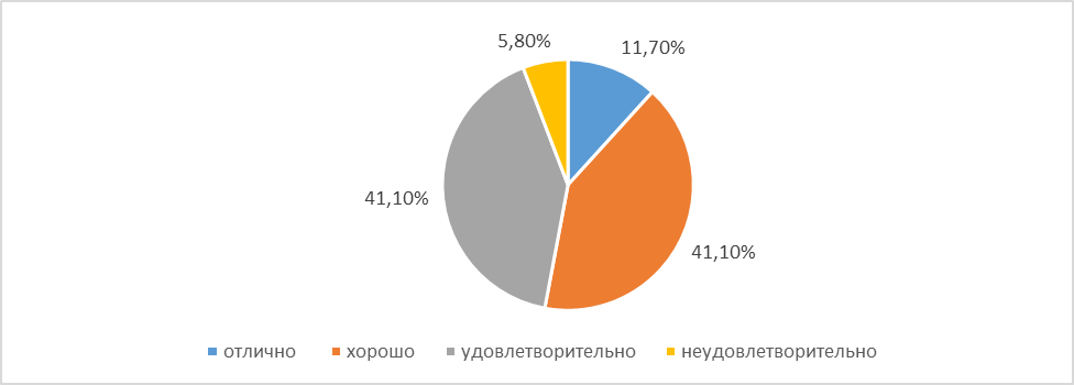 Почти половина (41,1%) респондентов оценивают работу медицинских сестёр на «4» (хорошо), ровно столько же на «3» (удовлетворительно). На «5» (отлично) оценили 11,7%, остальные 5,8% считают работу медицинских сестёр своих отделений заслуживающей неудовлетворительной оценки (2 балла).