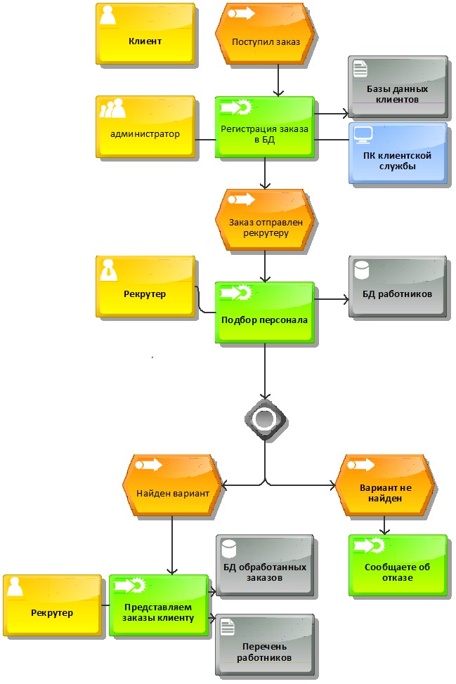 результатом чего является: | На предприятии работают люди, выполняющие схожие функции и работающие с одними и теми же данными. Т. е. административный отдел принимает вызовы и оформляет документацию, после чего заказчик «переходит в руки» отделу по работе с клиентами. И этот отдел заново работает с его документацией. |
