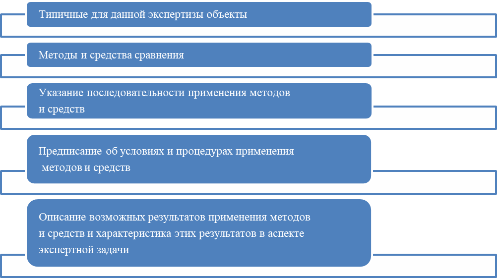 Впоследствии, главным элементом методики является последовательность описания действий эксперта, а также предписания об условиях и процедурах применения методов и средств.