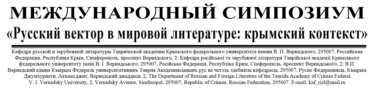 кафедра русской и зарубежной литературы Таврической академии Крымского федерального университета имени , 295007, Российская Федерация, Республика Крым, г. Симферополь, проспект Вернадского, 2.