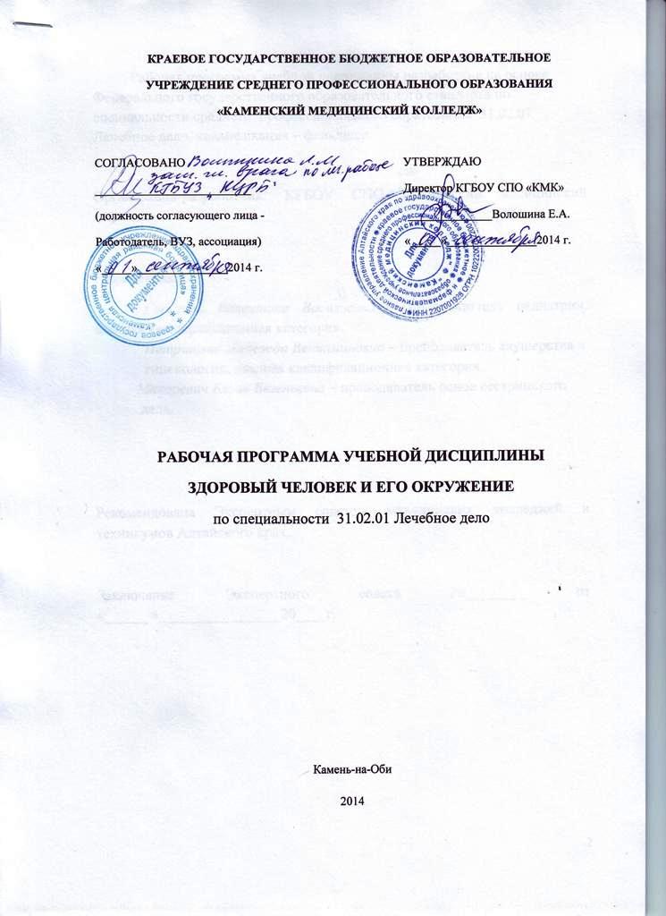 Учебная дисциплина «Здоровый человек и его окружение» является частью профессионального цикла общепрофессиональных дисциплин основной профессиональной образовательной программы по специальности 31.02.01 Лечебное дело.