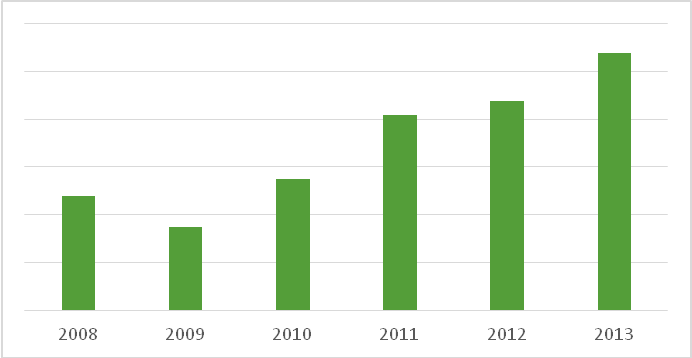 Диаграмма 8. Производство ПВХ труб в России в 2008-2013гг., тыс. тонн