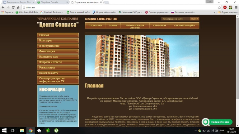 1. Заходим на сайт управляющей организации Сервиса» по адресу: www. ukcs. ru