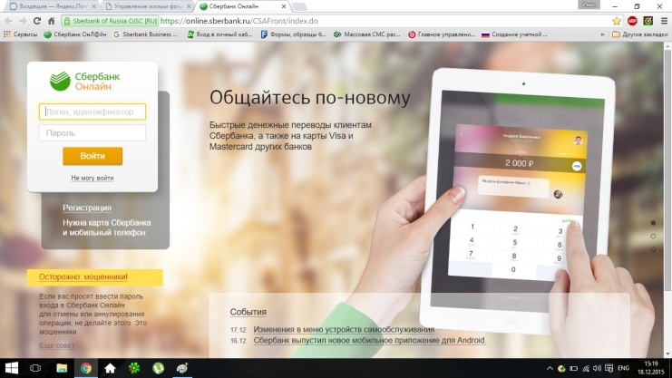 2. На сайте находим кнопку СберБанк Онлайн нажимаем: