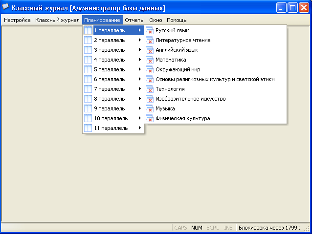 Рисунок 5. Параллели и предметы в пункте меню Планирование