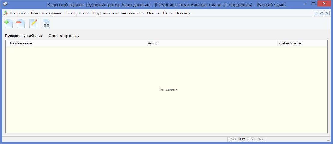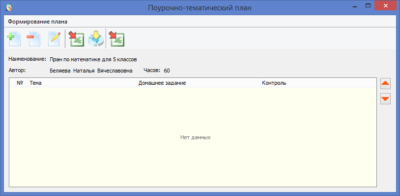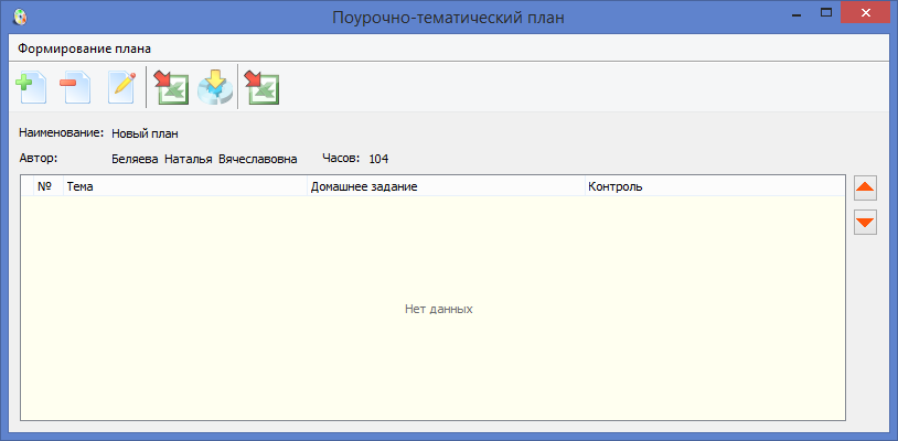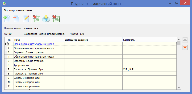 При этом откроется окно «Поурочно-тематический план» представленное на Ошибка: источник перекрёстной ссылки не найден11.