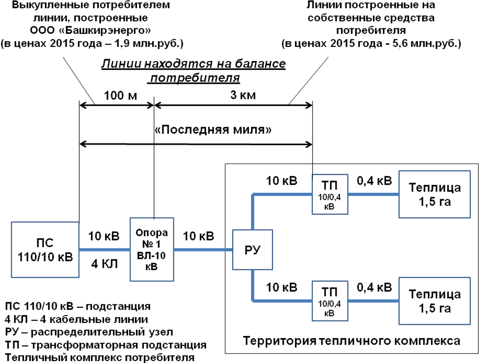 - при строительстве новых производственных объектов (тепличных комплексов) возможна оптимизация стоимости услуг по передаче электроэнергии за счет присоединения к электрической сети по высокому напряжению (ВН) с индивидуальным проектом, которым предусматривается финансирование строительства энергетических объектов «последней мили» за счет собственных средств потребителей и оформление на баланс потребителей.