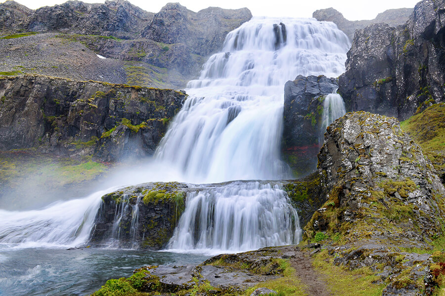 Диньянди, также известный как Фьядльфосс, – захватывающие дух водопады, название которых переводится как ревущий, бешеный. Красоту этой стихии можно оценить не только с побережья, а в непосредственной близости, совершив прогулку вверх по реке,