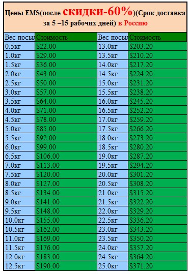 С 30кг до 45кг | Одежда9.5долл/КГ, другие 11долл/КГ |
