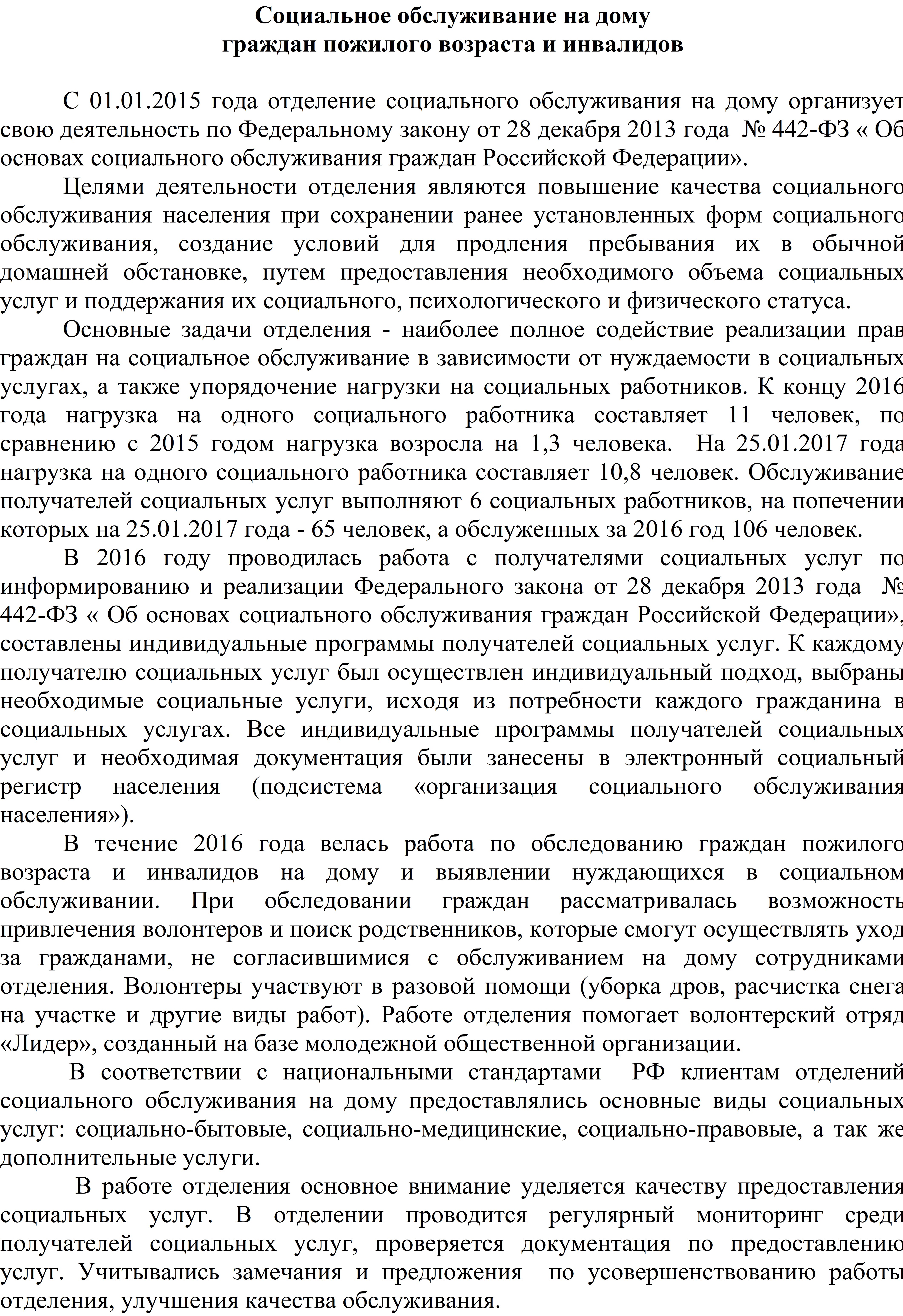 социальное обслуживание граждан, с предоставлением социальных услуг в полустационарной форме социального обслуживания и в форме социального обслуживания на дому.