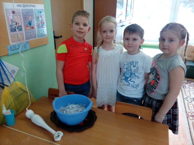 И мы решили в группе получить бумагу из вторичного сырья.