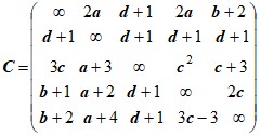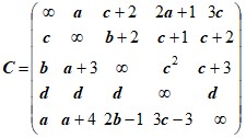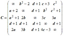 6. Дана задача коммивояжера с матрицей: Сделать два последовательных ветвления по методу ветвей и границ. | 6. Дана задача коммивояжера с матрицей: Сделать два последовательных ветвления по методу ветвей и границ. |