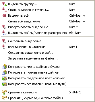 F5 | копирование файла или группы файлов | сортировать файлы в текущей панели по времени | копирование в архивный файл | копирование (имя файла и назначение запрашиваются) |