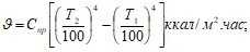 где: СS – коэффициент лучеиспускания абсолютно черного тела, равный 4,9 ккал/м2 час К4; Т– абсолютная температура, К.