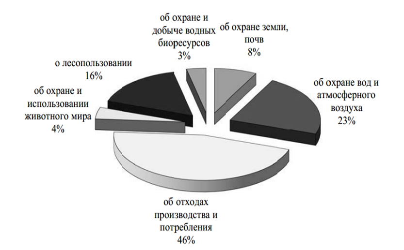 Приложение . Диаграмма о структуре выявленных прокурорскими работникам инарушений законов в экологической сфере по компонентам окружающей среды в 2012 году.
