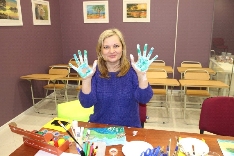 Для того что бы открыть таким людям волшебный мир искусства в нашей студии я даю бесплатные открытые уроки, на которых использую технику живописи руками.