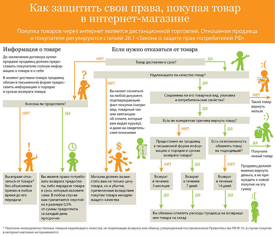 - товар не подошёл по форме, габаритам, расцветке, размеру или комплектации; на него имеется товарный или кассовый чек (или иной документ, подтверждающий оплату); сохранены товарный вид, пломбы, ярлыки и товар не был в употреблении.