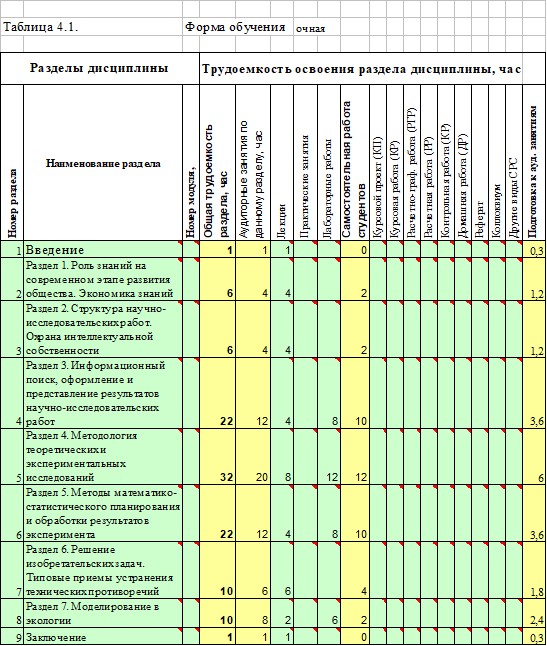 представлением об изобретательской деятельности, представлением об охране интеллектуальной собственности. представлением об экологическом моделировании, видах экологических задач.3 ОБЪЕМ ДИСЦИПЛИНЫ И ВИДЫ УЧЕБНОЙ РАБОТЫ
