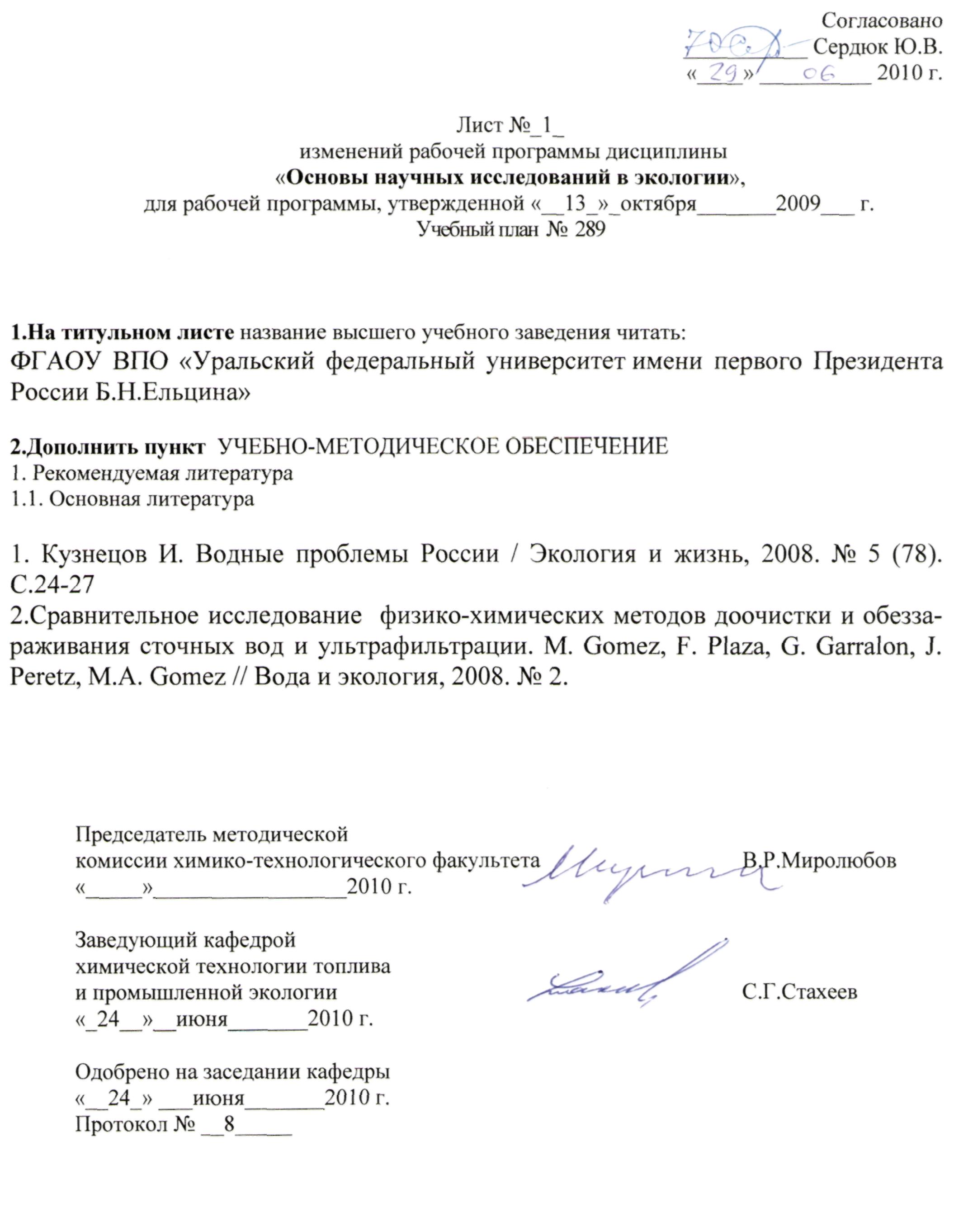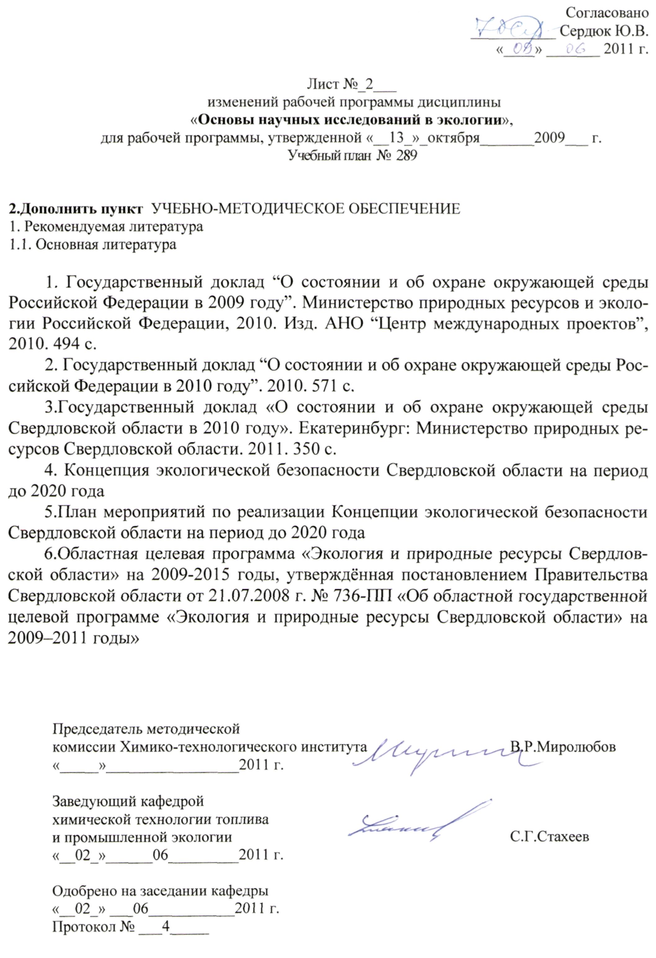 9. Лист регистрации изменений рабочей программы дисциплины «Основы научных исследований в экологии».