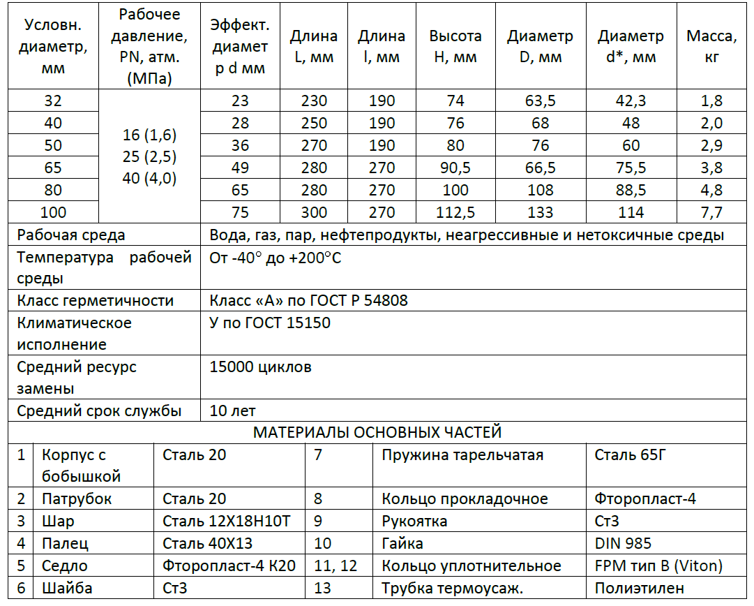 Основные параметры, материалы элементов и габаритные размеры КШЦС приведены в таблице 1 и на рисунке 2. Присоединение корпуса – под приварку в соответствии с ГОСТ 16037.