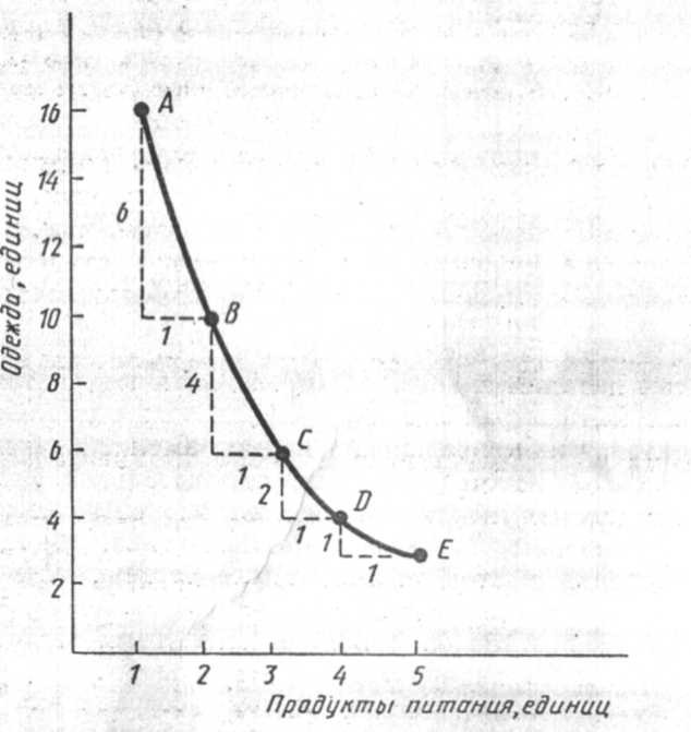 ' Чтобы увидеть, почему кривые безразличия должны быть выпуклыми, рассмотрим, как изменяется предельная норма замещения при движении вдоль кривой безразличия. Двигаясь от набора потребительских товаров