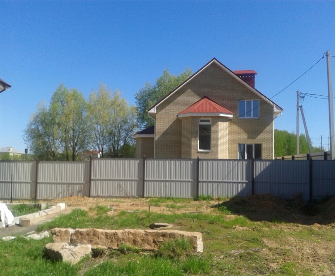Дом 2-этажный (1-й этаж + мансардный этаж), год начала строительства 2009г. Наружные стены жилого дома - газобетонные, обшитые 0,5 облицовочным кирпичом. Перекрытия – ж/бетонные, лестницы на мансарду пока нет. Крыша – профнастил.