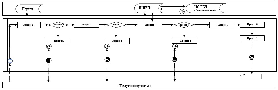процесс 9 – получение результата оказания государственной услуги услугополучателем, сформированного ИС ГБД «Е-лицензирование».