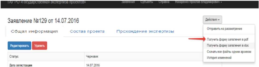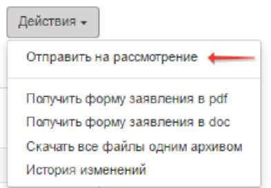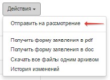 Теперь вы можете направить заявление на рассмотрение. Для этого необходимо выгрузить заявление.