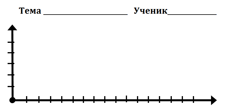 2. График. По горизонтальной оси ученик подписывает даты уроков. По вертикальной оси учитель совместно с учениками выбирает шкалу (оценка, эмоциональное состояние, уровень освоения материала). На протяжении нескольких уроков ученики отмечают точки, после чего (в конце месяца, четверти, темы, раздела) точки необходимо соединить. Ученик визуализирует процесс своей работы.