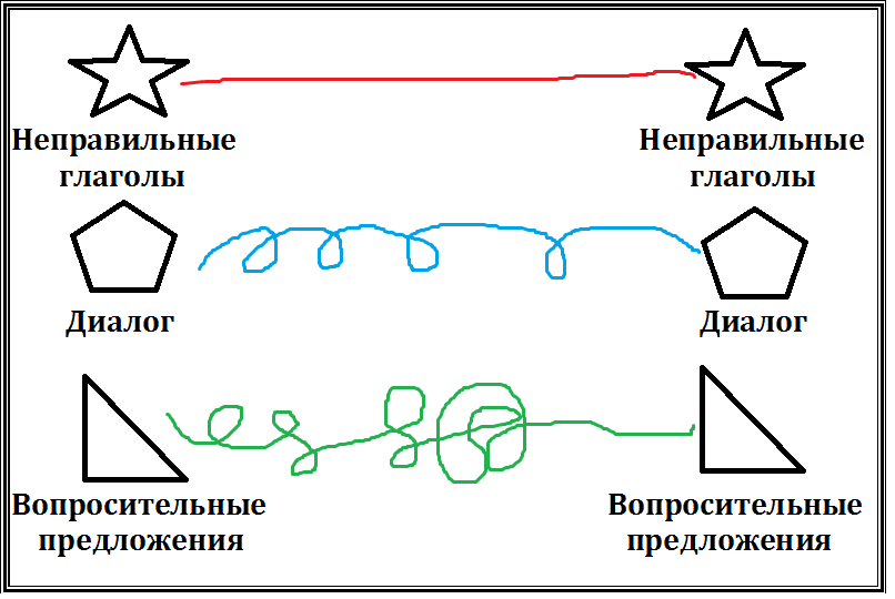 3. Соедини фигуры. Ученику представлена карточка, на которой фигуры символизируют ключевые моменты урока. Ученик соединяет фигуры линией. чем легче далось понимание, тем проще линия, если же понять было сложно, задание показалось сложным – линия запутанная.