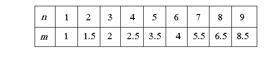 По этой таблице для каждого значения n, где n = 1, 2, ..., 9, можно найти соответствующее значение m. Так,