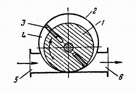 1- ротор; 2- корпус; 3- пластины; 4- рабочее пространство;