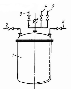 1 - корпус; 2-6 - краны; 7 - труба для передавливания.