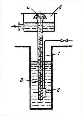 1- труба для подачи сжатого воздуха; 2- смеситель; 3- подъемная труба;