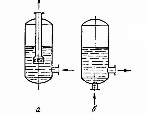 Монтежю (рис.11) представляет собой горизонтальный или вертикальный резервуар 1, в котором для перекачки жидкости используется энергия сжатого воздуха или инертного газа. Монтежю работает периодически.
