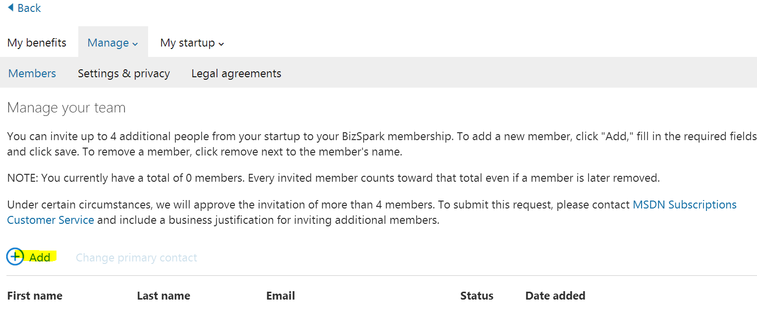 https://www. /bizspark/startup/default. aspx#/manage