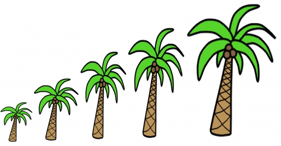 - Давайте теперь расскажем про каждую пальму, какой она высоты? (самая низкая, низкая, чуть выше, высокая, самая высокая)