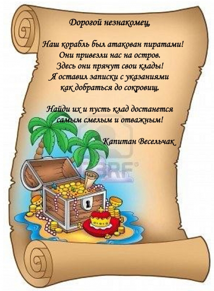 - Капитан Весельчак, которого Пират Джек захватил в плен, поможет нам в поисках. А как, мы узнаем только после того, когда прочитаем его послание.