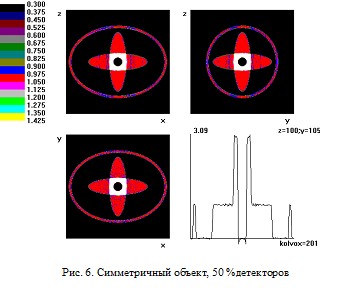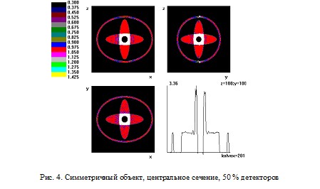 Рис. 6. Симметричный объект, 50 % детекторов