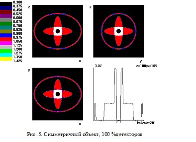 Рис. 5. Симметричный объект, 100 % детекторов