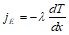 - плотность теплового потока – тепловая энергия, переносимая в единицу времени через единичную площадку, перпендикулярную оси x,