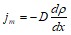 - плотность потока массы – масса вещества, диффундирующего в единицу времени через единичную площадку, перпендикулярную оси x,