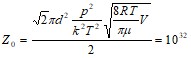 Пример 1. В сосуде вместимостью V=0,5 л находится кислород при нормальных условиях. Найти общее число столкновений Z между молекулами кислорода в этом объеме за единицу времени. Эффективный диаметр молекулы кислорода d=0,38 нм.