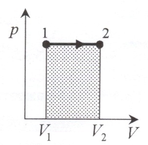 Диаграмма этого процесса – изобара – в координатах (p, V) изображается прямо параллельной оси абсцисс (ось V). При изобарном процессе работа газа при увеличении объема от